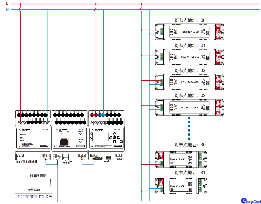 系統開關執行單元,一般安裝在配電箱內,電力載波通信模塊上行基于總線通信,下行基于力合微高性能高速電力線通信芯片,通過電力線與燈端控制器進行通信、遵循PLBUS協議,因此,通過該網關實施對燈的單控,廣播控制、分組控制、場景控制、故障監測等。無需布線、成本低施工和維護方便,可廣泛用于商場、酒店、展館、教室等智能照明系統。