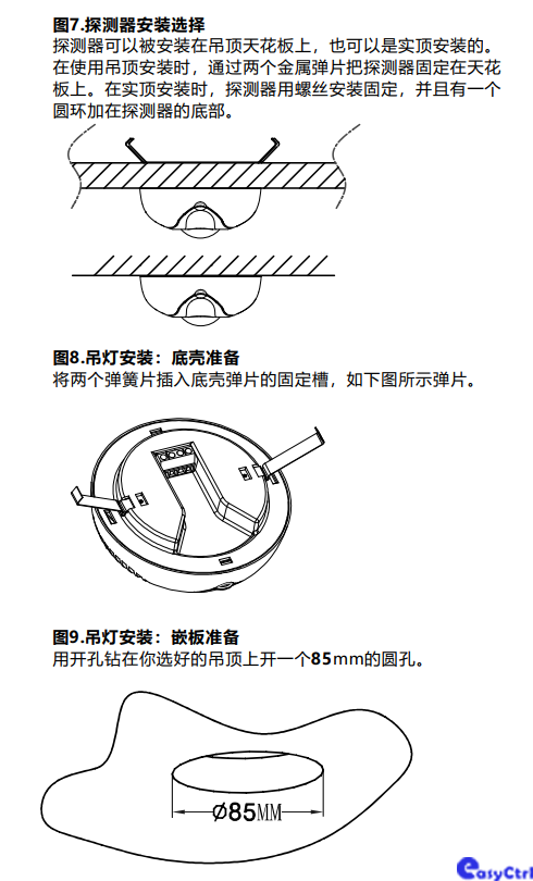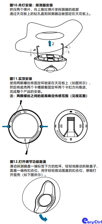 ■ 安裝簡單、自帶彈簧片,方便壓扣在假天花板上,如果是真天花板,自帶裝飾環,美化安裝