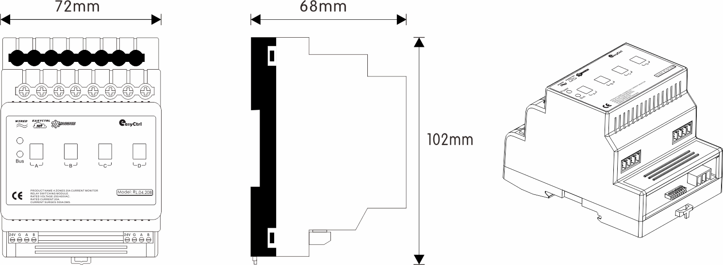 PRODUCT FUNCTION 功能作用系統(tǒng)開關(guān)執(zhí)行單元,一般安裝在配電箱內(nèi),采用磁保持繼電器,自帶機(jī)械強(qiáng)切開關(guān)功能,在系統(tǒng)死機(jī)或斷電的時(shí)候,也可開關(guān)繼電器,用于控制燈光的開關(guān),同時(shí)可檢測(cè)各回路的電流值;