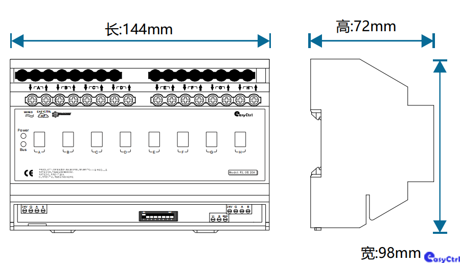 系統開關執行單元,一般安裝在配電箱內,導軌式安裝,占8個模數位,提供8路20A繼電器開關,采用磁保持繼電器,自帶機械強切開關功能,在系統死機或斷電的時候,也可開關繼電器,每回路可獨立控制4400W燈具的開關總,可控制燈光的開關,設備直流或交流電的通斷,無源干節點的通斷,強電或弱電窗簾的開合,支持YC-BUS總線/RS485控制;