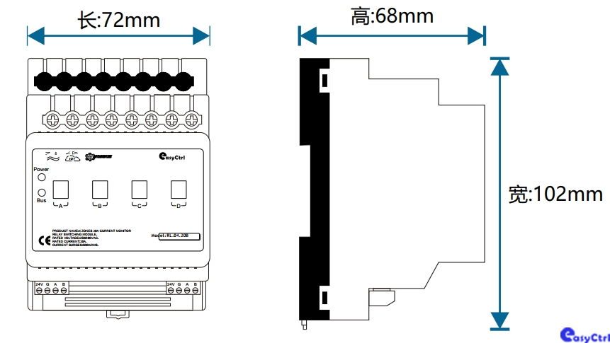 ■ 標(biāo)準(zhǔn)35mm導(dǎo)軌安裝,占4個(gè)模數(shù)位