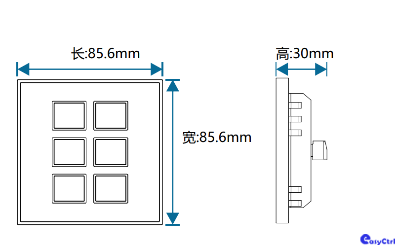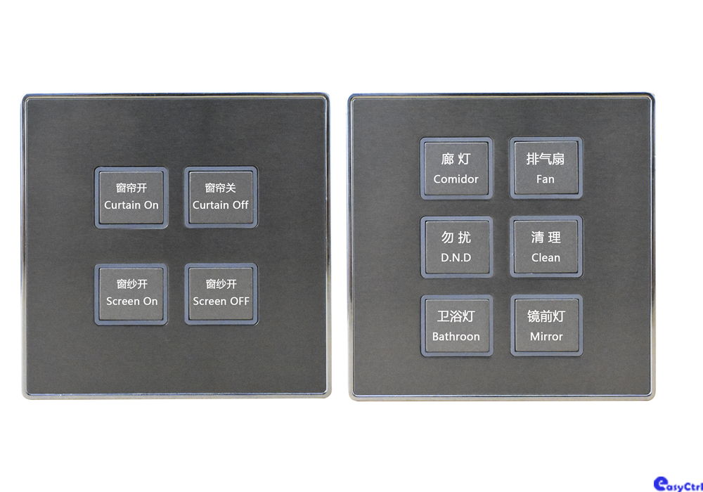 標準86底盒安裝,支持無縫銜接,可搭配多種材質及顏色的面板,提供4/6按鍵面板,復位式輕觸開關,結構成熟,性能穩定,高光工藝。
