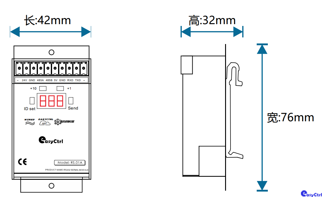 系統第三方設備控制單元,一般安裝在配電箱內,導軌式安裝,通過總線控制RS485/RS232的設備,可控制第三方串口設備,如:RS485空調面板,投影機,矩陣第三方設備;