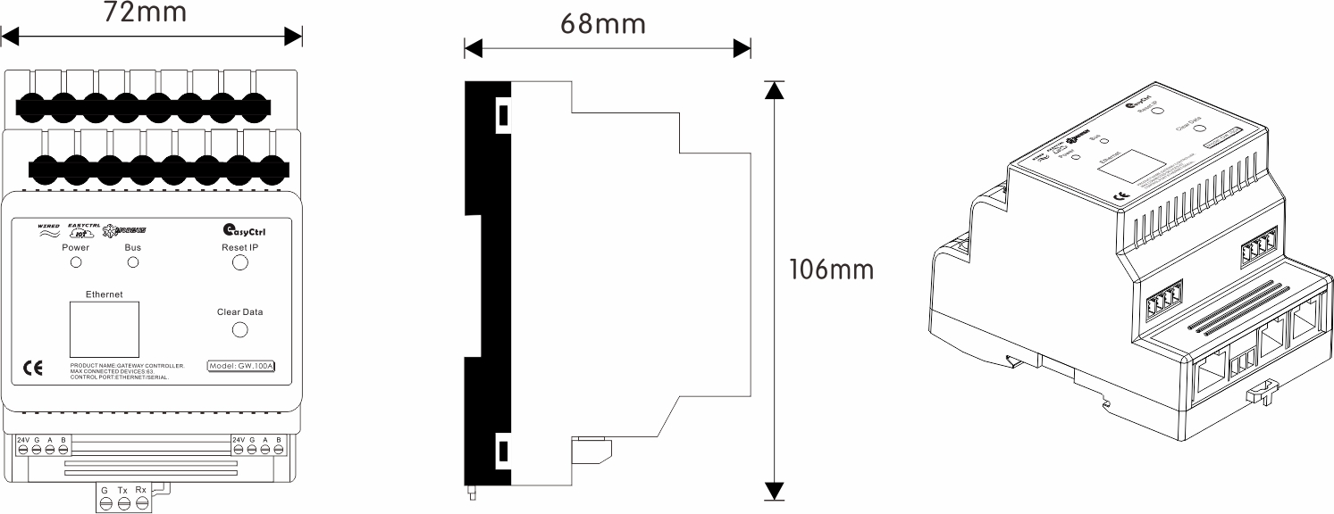■ 功能按鍵:1×Reset IP復位鍵, 1×Clear data數據清除鍵■ 通信接口:1×Rs232接口,1×RJ45網口