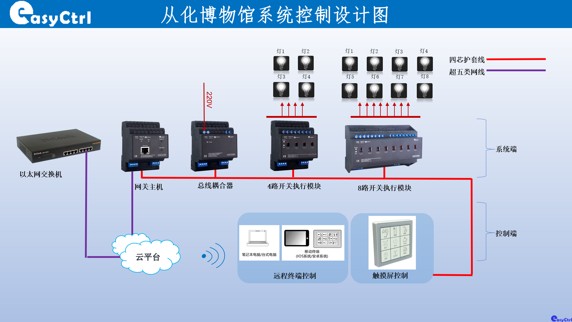 項目需求:博物館一共五層樓,所有燈都是開關燈,每一層分區域照明控制。