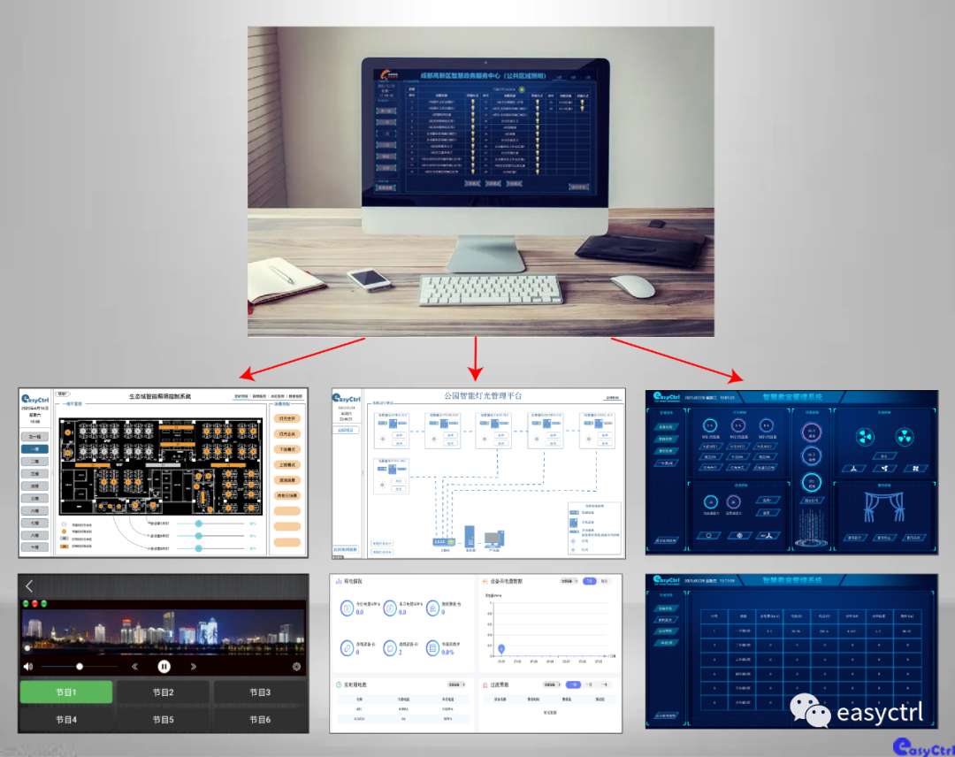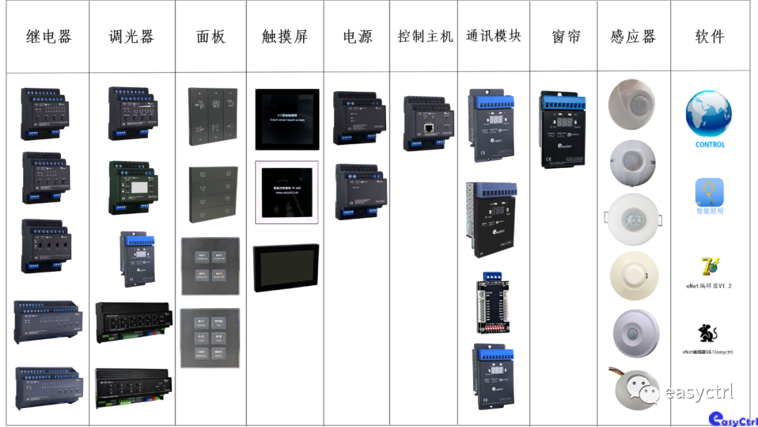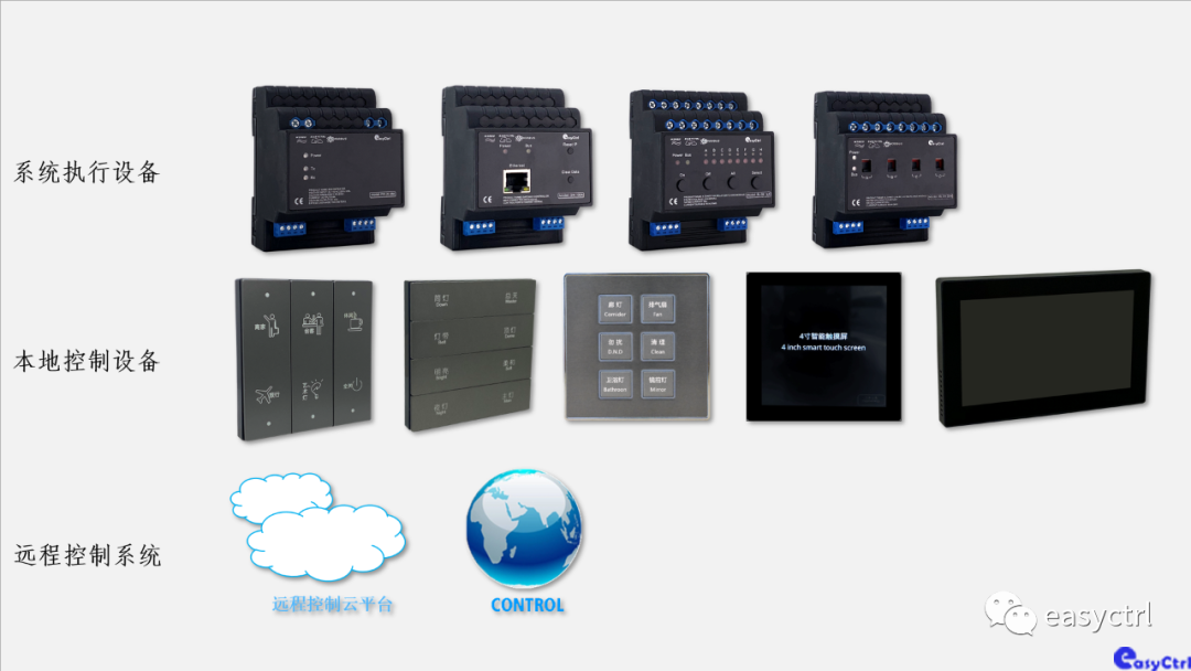照明控制系統 = 電源 + 主機 +繼電器+( 按鍵面板 + 觸摸屏+ 遠程控制軟件)