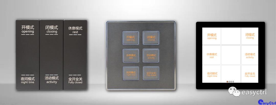 在公共區域通過場景控制,面板按照設定好的場景進行控制,可以定義任意組合的燈開關,比如設定按鍵1為一鍵全開全關,按下即可執行。