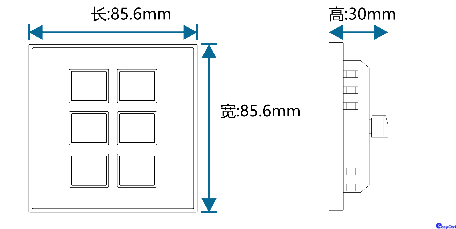 ● 標準86底盒安裝,支持多個面板無縫級聯面板尺寸圖
